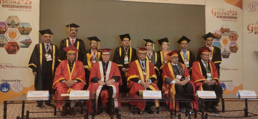 जेरिएटिक सोसाइटी ऒफ इंडिया की 38वीं वार्षिक कार्यशाला के कन्वोकेशन सत्र में फैलोशिप पाने वाले चिकित्सक जीएसआई के पदाधिकारियों और वरिष्ठ चिकित्सकों के साथ।