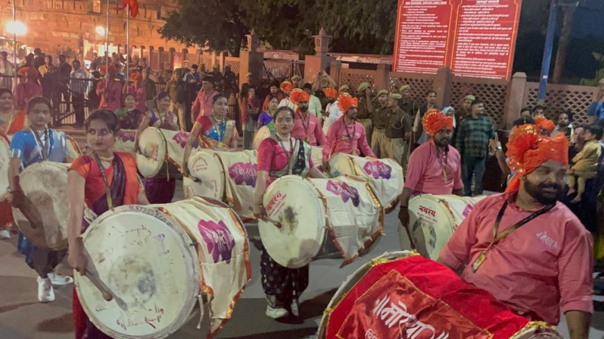 मुख्य अतिथि महाराष्ट्र के मुख्यमंत्री देवेंद्र फडणवीस का स्वागत मराठी पगड़ी पहनाकर किया गया। भगवा ध्वजों से सजा आगरा किला ढोल-नगाड़ों और मंजीरों की ताल पर झूम उठा। मराठी परिधान में सजे कलाकारों के नृत्य में अतिथि और विदेशी पर्यटक भी शामिल हो गए। हर ओर जय भवानी, जय शिवाजी के उद्घोष गूंजते रहे।