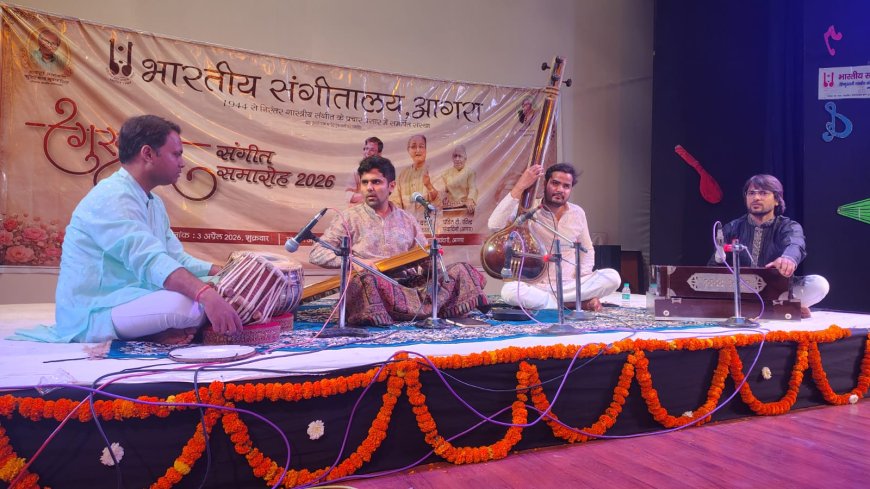 आगरा। केंद्रीय हिंदी संस्थान में शुक्रवार को आयोजित गुरुवर संगीत समारोह 2026 की शाम शास्त्रीय संगीत की दिव्यता और आध्यात्मिक ऊर्जा से सराबोर रही, जहां देश के ख्याति प्राप्त कलाकारों ने अपनी अनुपम प्रस्तुतियों से श्रोताओं को मंत्रमुग्ध कर दिया। भारतीय संगीतालय द्वारा आयोजित यह समारोह गुरु-शिष्य परंपरा, सांगीतिक साधना और युवा प्रतिभाओं के उत्कर्ष का जीवंत उदाहरण बनकर सामने आया।