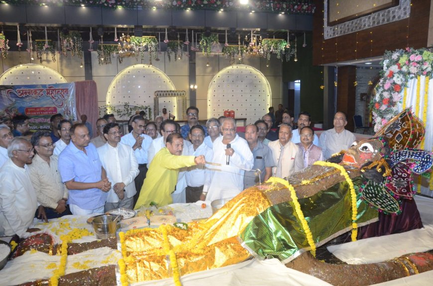 अन्नकूट प्रसाद के रूप में विभिन्न प्रकार के व्यंजन अर्पित किए गए और भक्तों ने एक-दूसरे को पर्व की बधाई दी।