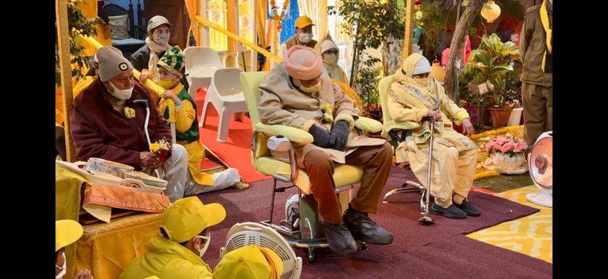 बसंत पंचमी के मौके पर अनुयाइयों को दर्शन देते हुजूर महाराज प्रो. प्रेम सरन सतसंगी और रानी साहिबा।