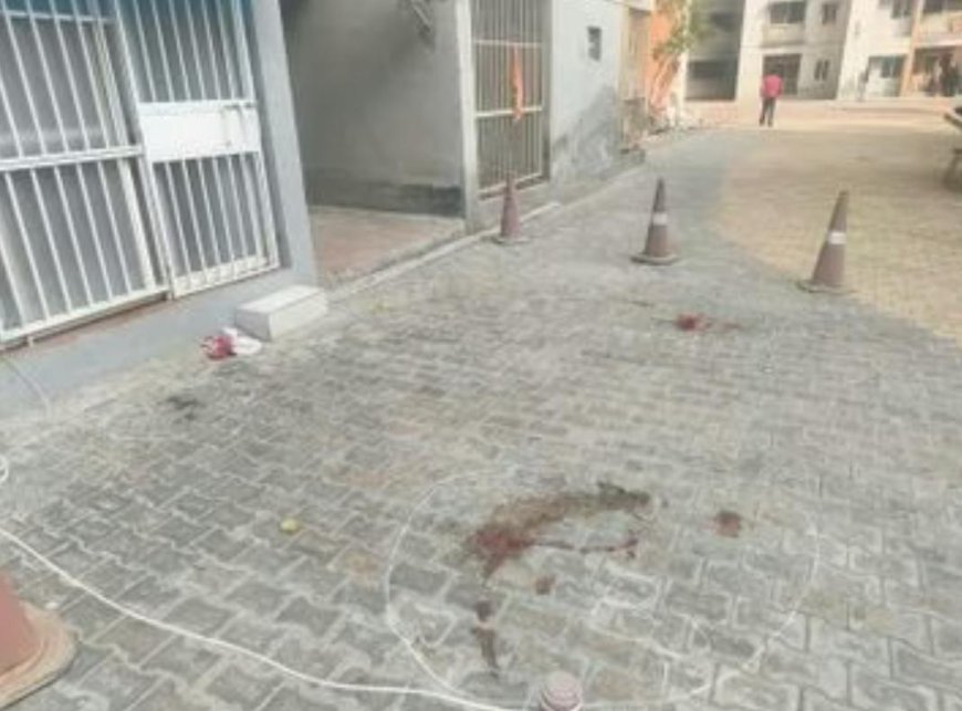 गाजियाबाद में नौवीं मंजिल से छलांग लगाकर आत्महत्या करने के घटनास्थल की कुछ तस्वीरें।