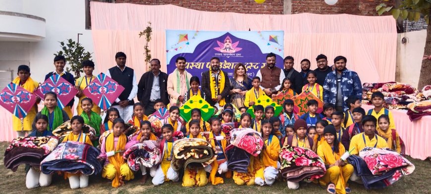 बूढ़ी का नगला, स्थित श्री महाकालेश्वर मंदिर में तपस्या फाउंडेशन द्वारा आयोजित उत्तरायण पर्व उत्सव में बच्चों को कंबल सहित खाद्य सामग्री एवं पतंग वितरित की गई।