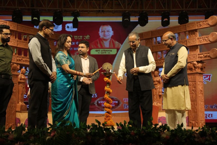 इससे पूर्व ‘चाणक्य’ महानाट्य का शुभारंभ सिने अभिनेत्री व सांसद हेमा मालिनी, ब्रज तीर्थ विकास परिषद के उपाध्यक्ष शैलजाकांत मिश्र, विकास प्राधिकरण के उपाध्यक्ष एस.बी. सिंह, परिषद के सीईओ सूरज पटेल, नगर आयुक्त जग प्रवेश, सीडीओ मनीष मीणा तथा ज्वाइंट मजिस्ट्रेट अभिनव जे. जैन ने दीप प्रज्ज्वलित कर किया। इस अवसर पर हेमा मालिनी ने मनोज जोशी का सम्मान कर उनकी कला को “भारत की सांस्कृतिक चेतना का दर्पण” बताया।