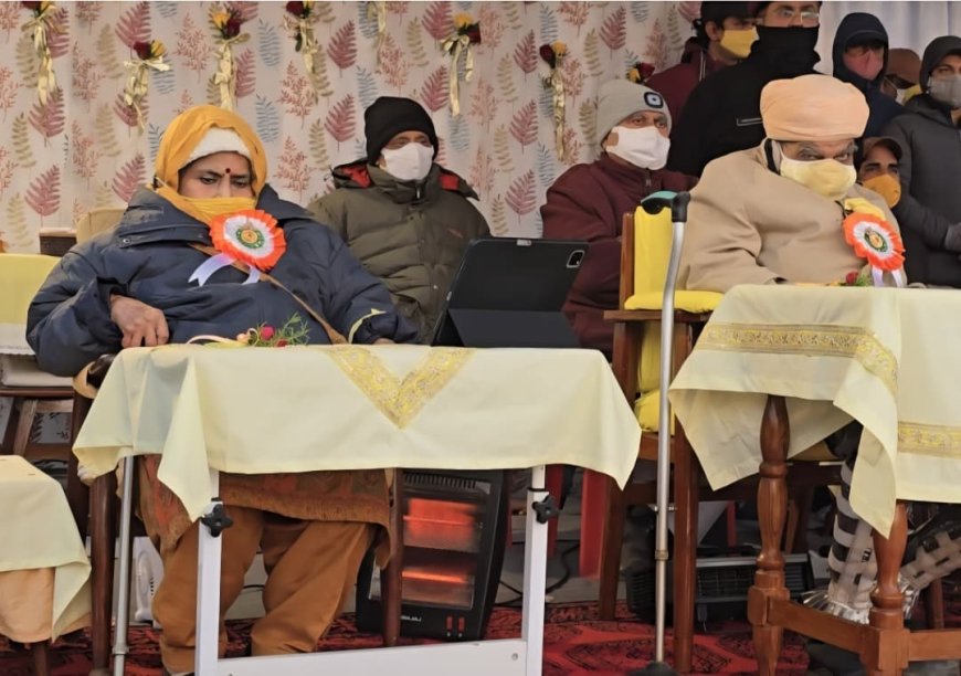गणतंत्र दिवस समारोह के कार्यक्रमों का अवलोकन करते हुजूर प्रो. प्रेम सरन सतसंगी और रानी साहिबा।
